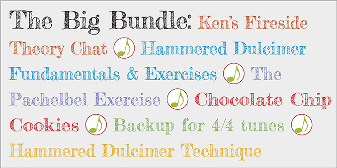 These five modules are intended to provide a foundation for the more than 60 videos in the full series. In these modules, I cover a wide variety of hammered dulcimer playing techniques, the complete organization of the instrument, basic and more advanced chord theory, many root and inversion arpeggio patterns, the derivation of three note chords and the relationship to harmonizing a scale, various exercises, backup skills and more.